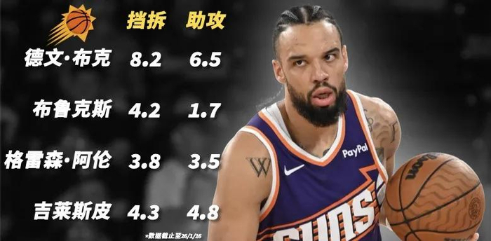 太阳队当然依赖布克,但布克不在的时候,上述的每一个人都能承担责任,起到不错的效果。