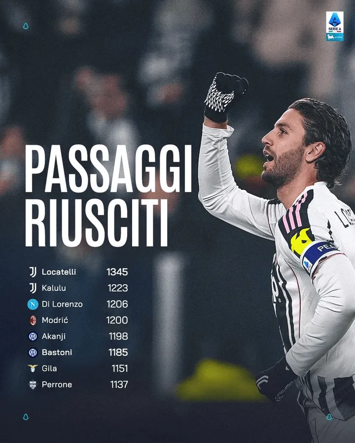 虎扑01月23日讯 根据意甲联赛官方的统计,洛卡特利是本赛季该项赛事中成功传球次数最多的球员。