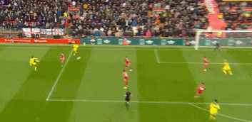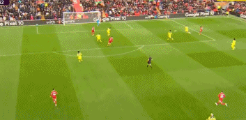 第36分钟,理查利森后场带球,索博斯洛伊巧妙将球断下,麦卡利斯特做球,加克波劲射直奔左下角,维卡里奥扑了一下,皮球击中立柱弹出,利物浦差点再下一城。