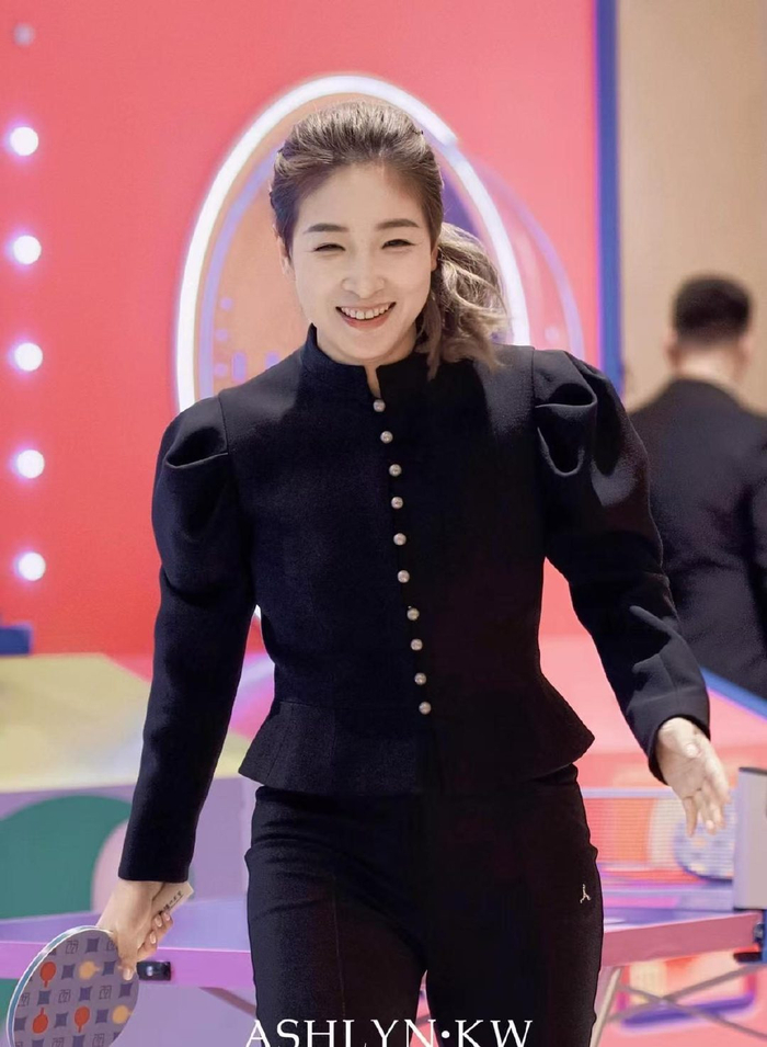 一身黑色的黑珍珠收腰衫,衣服上的珍珠很好的起到了锦上添花的作用,简单的清爽高马尾,刘诗雯姣好的面容完美展示的同时,又显得干净清爽。